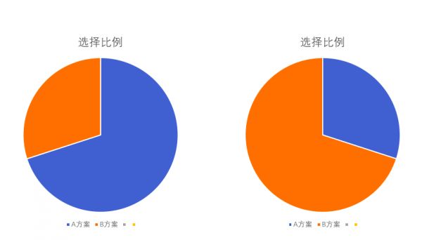 无论是哪一组被试,投票结果都接近三七开,但比例完全是逆转的:第一组是A七B三,第二组是B七A三。