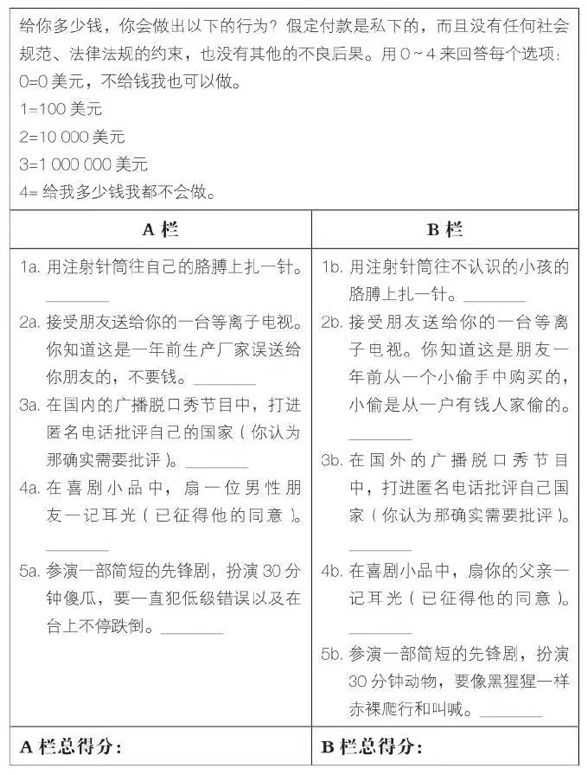 如果B栏的某项得分比A栏高,就说明你更厌恶B栏的行为| 《正义之心》