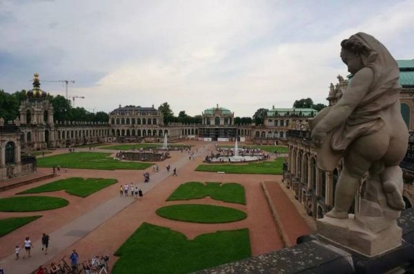 初听茨温格宫的名字,我觉得非常困惑,甚至误以为它与作家斯蒂芬·茨威格同名。事实上,那是特指内部和外部防御墙之间的狭窄区域。德累斯顿大致在13世纪就建有防御性的城墙城堡。胡斯战争期间,德累斯顿又在城墙外加设一道外墙,内外墙之间的地带就是如今的茨温格宫。