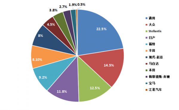 图4:2022年墨西哥主要车企的市场份额,资料来源:Marklines