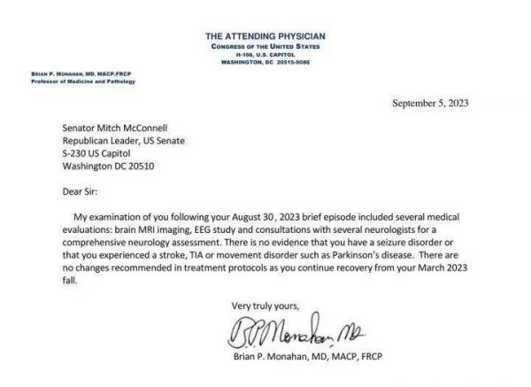 9月5日,美国国会大厦的主治医生布莱恩·莫纳汉(Brian Monahan)开始对这位共和党大佬的健康危机“拆弹”。他宣布,麦康奈尔在接受一组神经科医生的评估,并做了MRI检查后,没有中风或癫痫发作,也没有患帕金森病。