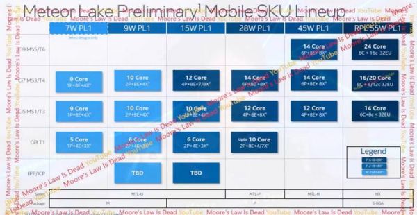 爆料人“Moore's Law Is Dead”在 7 月初曝光了英特尔 Ultra 1 代酷睿移动处理器的型号规格信息,最高 6 大核 + 8 小核 + 8 Xe 核显。核显方面,英特尔将这款核显称为低功耗 GPU 的“新飞跃”,其采用了全新的低功耗图形 IP,比上代增加 33% 的图形核心,功耗和芯片面积效率优化,支持完整的 DX12 Ultimate API。