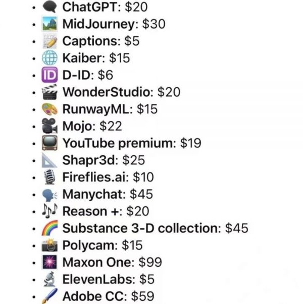 另一位去年离开大厂的朋友认为,应该坚持系统学习,而不是泛泛阅读。他今年购买了各种和大模型相关的产品试用。他数一下自己这半年购买的AI产品,大概每月付费几百美元,虽然不便宜,但是他认为非常值得。“每个产品都在一方面挺强,然后把它连贯起来,就会叠加出最炫酷的效果。”