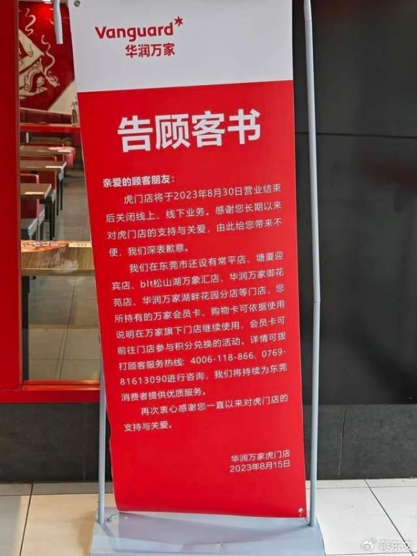 前不久,郑州华润万家秦岭路店挂出一份告顾客书,将于9月1日正式结束经营。