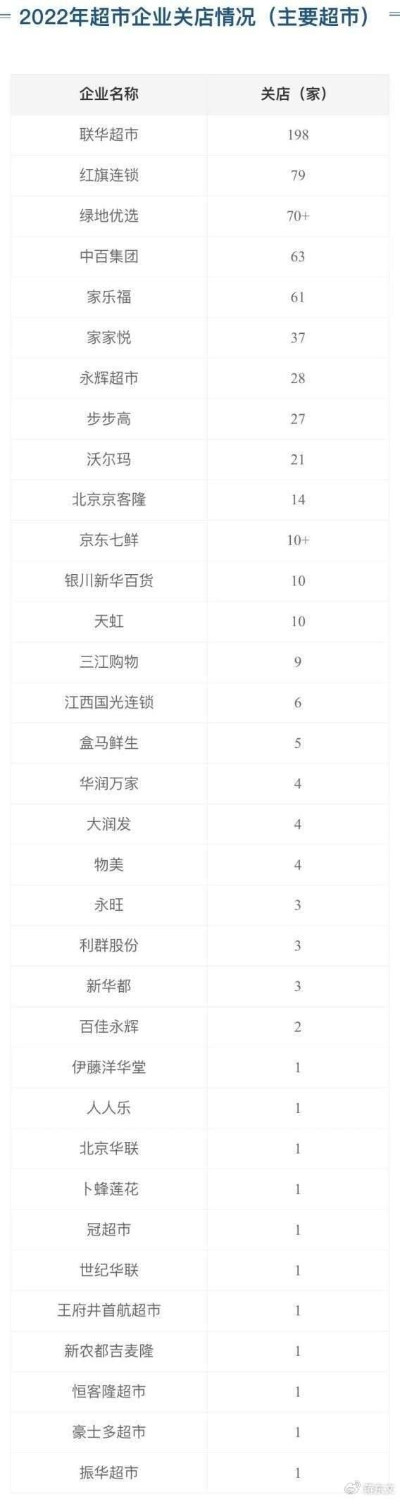 其实不仅仅是华润万家,近年来,除了华润万家,沃尔玛、永辉、家乐福、新华都、冠超市等零售企业在全国各地也接连关闭了不少门店。