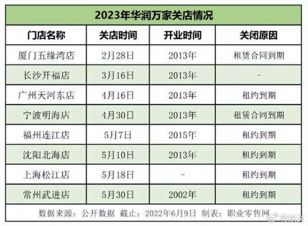 这些关闭的门店的数量和原因表明华润万家在扩张方面正在做出调整,以更好地适应市场需求和经济环境。