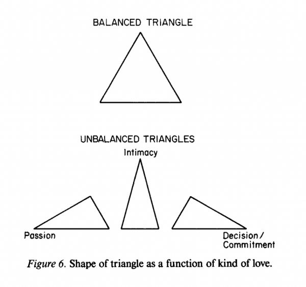 理论模型往往是对理想爱情的刻画——一个大大的正三角形:非常亲密、激情澎湃并作出足够的承诺。