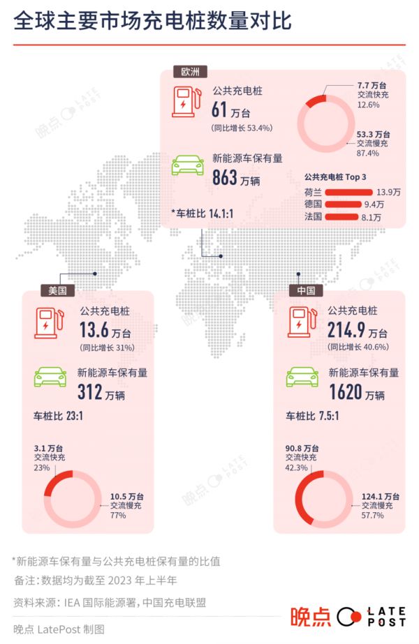 中国充电桩总数并不少,车桩比全球领先。据中国充电联盟统计,截至今年 7 月,中国有 693 万台充电桩,其中近七成,也就是 470 多万台是随车配建的私人充电桩,剩余 220 多万台是公共充电桩。总车桩比达 1.9:1,位居世界第一。