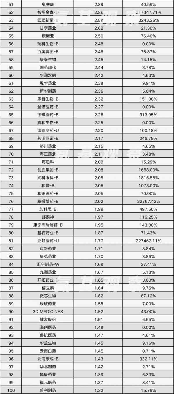 2023年医药研发百强榜