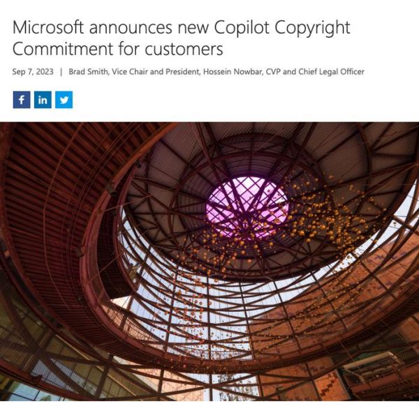 其一,微软向商业客户使用 Copilot 采取了收费政策,如果他们的使用引起法律相关问题,微软应该将这个问题视为自己的问题,而不是客户的问题。