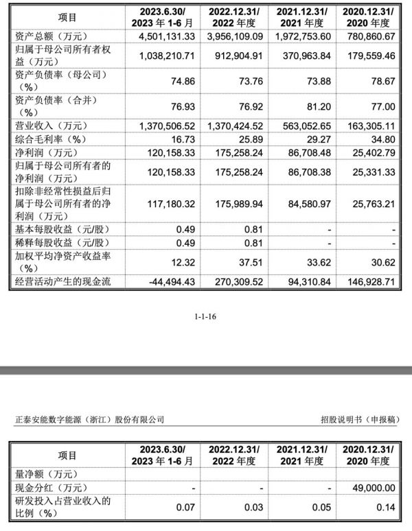 而这一爆发式增长,也直接反映在正泰安能的业绩表现上。招股书显示,报告期各期,公司营收分别为16.33亿、56.31亿、137.04亿、137.05亿元;综合毛利率分别为34.80%、29.27%、25.89%、16.73%;净利润分别为2.54亿、8.67亿、17.53亿、12.02亿元;扣非归母净利润分别为2.58亿、8.46亿、17.60亿、11.72亿元。