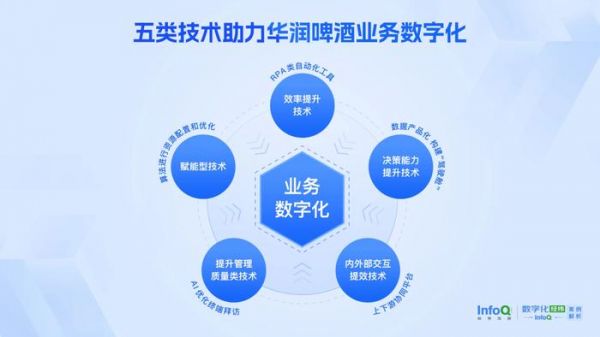 第二类是 赋能型的技术。以供应链为例,通过应用算法来平衡现有需求和供应之间的关系,当前华润啤酒的供应链计划和仓网规划都运用了大量的计算逻辑和算法来进行资源配置和优化。郭华表示,这一类技术本质上是解决一些结构性难题,比如调整业务的分工合作、优化流程,以及在组织层面培养一些中心化的能力。