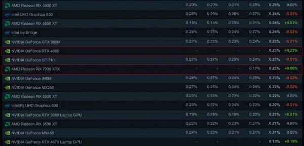 英伟达 RTX 4060 在 Steam 显卡统计中首次亮相,份额 0.23%