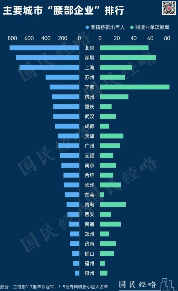 专精特新“小巨人”、制造业单项冠军,被认为是承上启下的中场力量,我们借用“腰部城市”,发明了 “腰部企业”的概念。