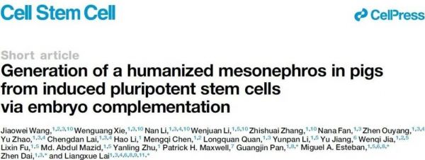 [1] Jiaowei Wang et al., Generation of a humanized mesonephros in pigs from induced pluripotent stem cells via embryo complementation. Cell (2023). DOI: 10.1016/j.stem.2023.08.003