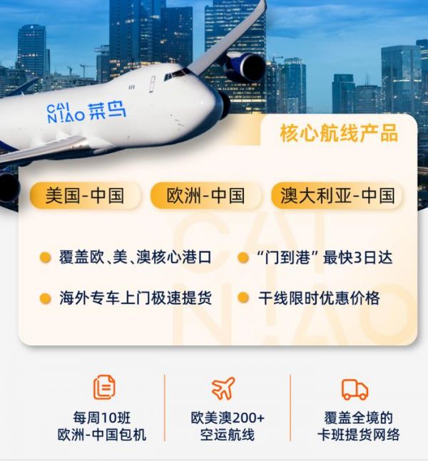 菜鸟国际推出欧美到中国“门到港”三日达产品,号称“晚到必赔”