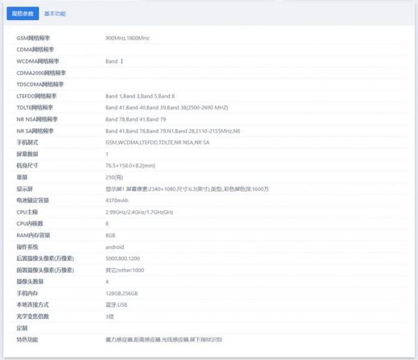 该机配有 8GB 内存,128GB 和 256GB 两种规格,此外配有重力感应器,距离感应器,光线感应器,屏下指纹识别。
