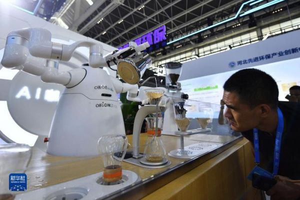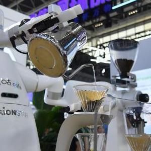 9月6日,参观者在数博会上观看AI咖啡手冲机器人制作咖啡。 在2023中国国际数字经济博览会现场,各种机器人产品亮相展区,吸引观众驻足参观,感受智能机器人的科技魅力。 9月6日至8日,2023中国国际数字经济博览会在河北石家庄举行。本届数博会主题为“工业互联网赋能千行百业,数字经济引领高质量发展”。 新华社记者 骆学峰 摄