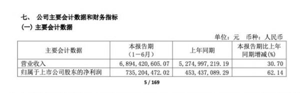 以预制菜龙头企业安井食品为例,公司上半年实现营业收入约68.94亿元,同比增长30.7%;归母净利润约7.35亿元,同比增长62.14%。