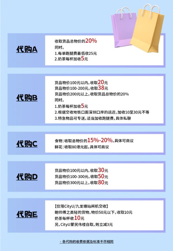 各代购的收费依据及标准不尽相同
