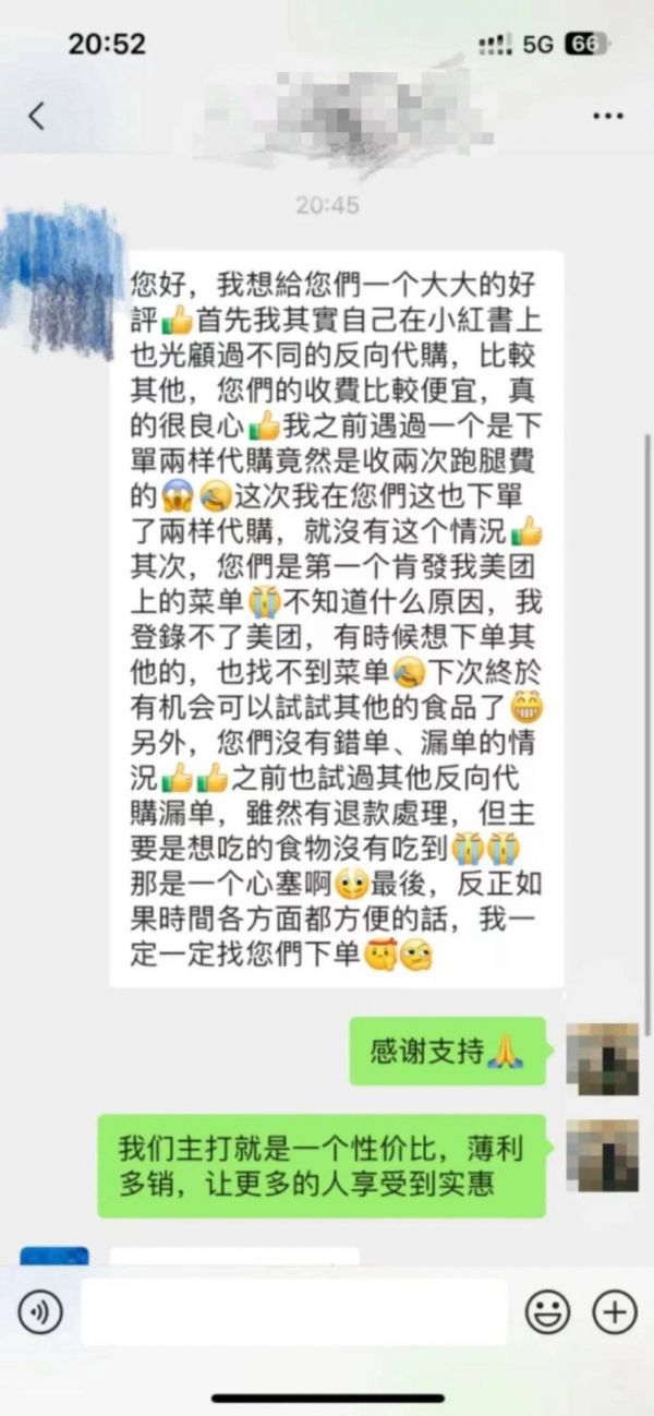 KK说,“来找我的,大部分是以前小单做起慢慢积攒的老客户。他们之后家庭聚会、朋友聚会也会联系我。有些公司团建,也会有HR专门找我下单买深圳的美食。这样一个大单就是一万多块钱。”