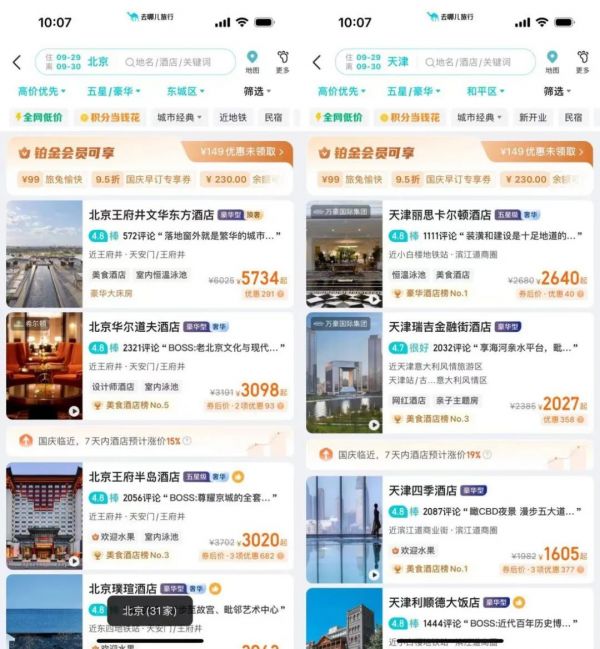 京津酒店价格对比“荣誉市民”郭德纲的返乡定居,则带动了天津在2023年的第一波旅游话题。早在今年初,就有消息称郭德纲将搬回天津居住。5月中旬,郭德纲正式搬回天津红桥区。在采访中郭德纲表示,自己回天津是为了小儿子郭汾阳上学,而且“送完孩子回家路上还能吃个早点”。天津煎饼果子本就名声在外,叠加郭德纲的名人效应,今年五一及端午小长假,就有不少慕名来天津吃早点的游客。