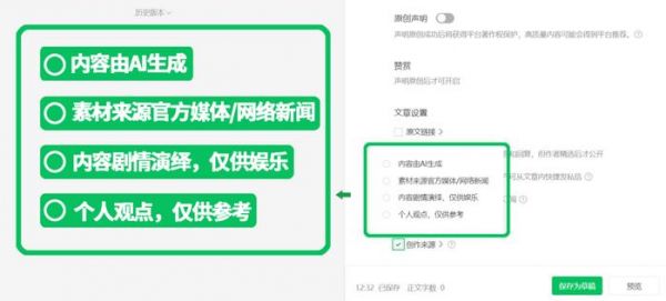 为进一步落实好《通知》要求,更好地引导创作者规范信息来源标注,微信陆续开放标识一键勾选能力,“自媒体”创作者在发布内容时,可以根据具体情况自主选择标识,用户也可以根据标识更好地辨别内容,相关标识如下所示: