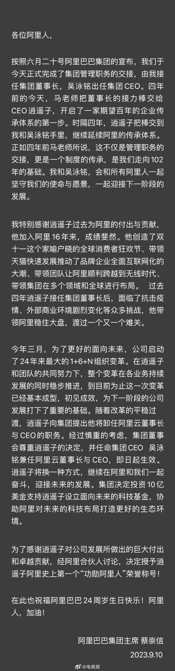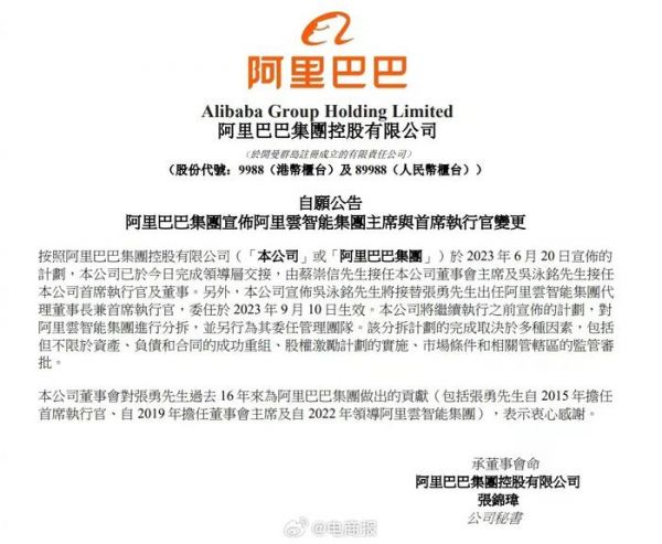 阿里巴巴换帅:为什么是蔡崇信、吴泳铭接棒?