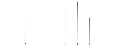 看一看下图的线段。线段A的长度是否与线段1、2或3相等?