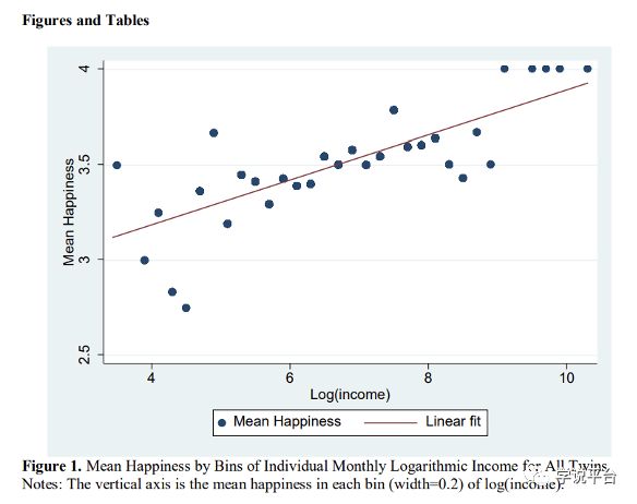 研究使用了一个独特的中国双胞胎数据集来估算收入对幸福感的因果效应。研究发现,个人收入对幸福感有很大的正面影响,对数收入增加一个标准差会导致幸福感增加大约0.38个标准差。平均而言,收入翻倍会使幸福值增加0.26(以四级幸福感量表衡量)或0.37个标准差。这种效应对于男性和中年人尤为显著。