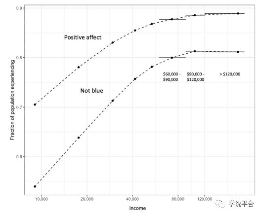 美国普林斯顿大学的诺贝尔经济学奖得主Daniel Kahneman与他的同事Angus Stewart Deaton在PNAS发表了一项针对美国被试的研究。调查显示,金钱对于提高幸福感确实有作用,但这种作用是有上限的。(相关文章:《惊呆了,“废话文学”竟然发表在顶刊PNAS,感觉自己又行了》)