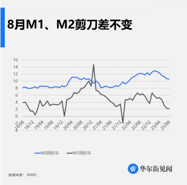 8月货币供应量M2同比增长10.6%,M1同比增长2.2%,M2-M1剪刀差为8.4%,较上月持平。