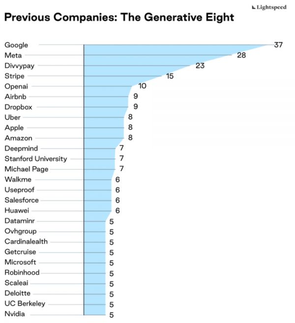 八大AI公司主要人才来源:此前工作背景来自谷歌、Meta等公司