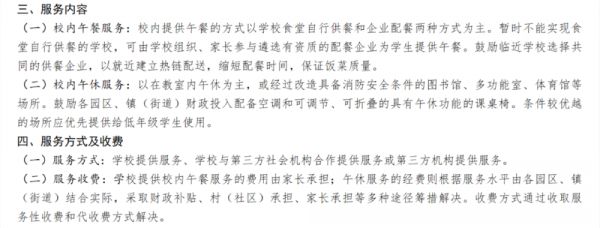 但值得注意的是,自 2017 年开始,类似的规定条例似乎并未继续发布。最近一次出台与午休管理费相关的文件,是 2020 年教育部等五部门颁布的《关于进一步加强和规范教育收费管理的意见》,虽然其也提到完善学校服务性收费和代收费等政策,但并未出现“午休管理服务费”字眼,与其概念相近的则是课后服务这一类目。