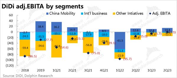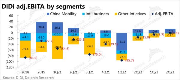 简单来说,收入端恢复不错,但主要的亮点还是在减亏。二季度滴滴的调整后EBITDA亏损已仅为0.09亿元,扭盈在望。