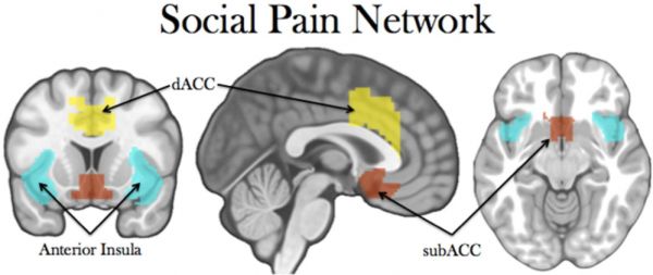 事实证明,自恋程度较高的青少年在所谓社交痛苦网络(social pain network)中表现出了更活跃的水平,而自恋程度较低的青少年则没有这种情况。该网络是大脑一些区域的集合,包括部分岛叶(insula)和前扣带皮层(anterior cingulate cortex),之前的研究发现这些区域与面对社交排斥时的痛苦有关。有趣的是,研究人员并未发现这些男孩在自我报告的痛苦方面存在差异。