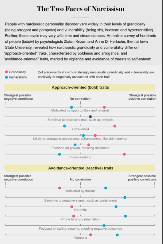 © “The Narcissism Spectrum Model: A Synthetic View of Narcissistic Personality, ” by Zlatan Krizan and Anne D. Herlache, in Personality and Social Psychology Review, Vol. 22; February 2018