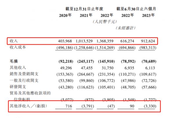 以6月30日同日提交招股书的黑芝麻智能和速腾聚创为例,据招股书数据,2020—2022年,黑芝麻智能净利润分别为-7.6亿元、-23.57亿元、-27.54亿元,而同期营收仅分别为0.53亿元、0.61亿元、1.65亿元,历年亏损严重。速腾聚创也不例外,2020—2022年,速腾聚创净利润分别为-2.21亿元、-16.55亿元、-20.86亿元,而同期营收分别为1.71亿元、3.31亿元、5.30亿元。
