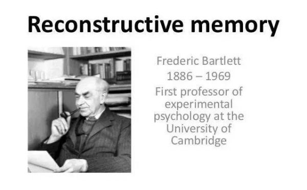 通过分析这些故事如何在几天、几个月,和几年中转变,他提出记忆是对事件的不完美重构。他认为,我们只记住很小一部分的原始观察,并利用文化参照和个人知识来填补空缺的部分。