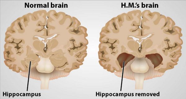正常大脑与亨利·莫莱森术后大脑对比,图片来自:Duck University