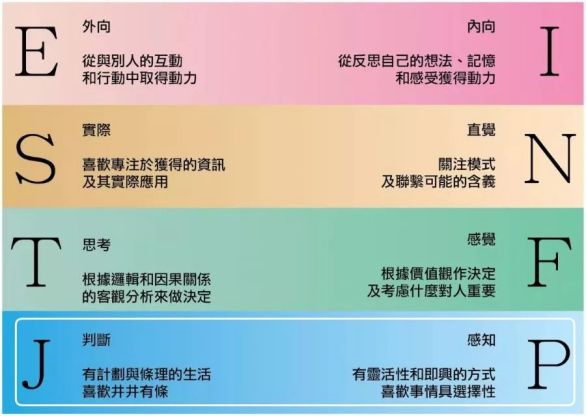 细节型与结果型这两种企业性格,对应的是MBTI中的“判断J”与“知觉P”,主要因为: