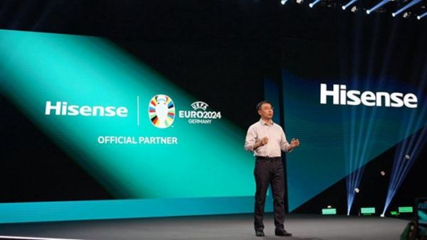 IFA 开幕式上,海信总裁于芝涛以流利的全英文演讲“首秀”,正式宣布成为2024年欧洲杯官方合作伙伴,这是自2016年之后,海信第三次成为欧洲杯的官方赞助商。