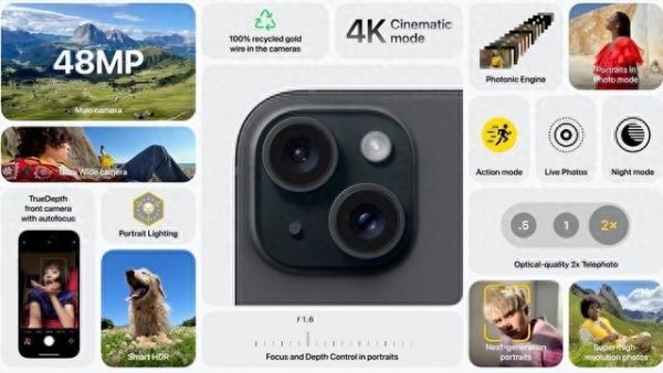 苹果发布iPhone 15/15 Plus:标配4800万像素主摄