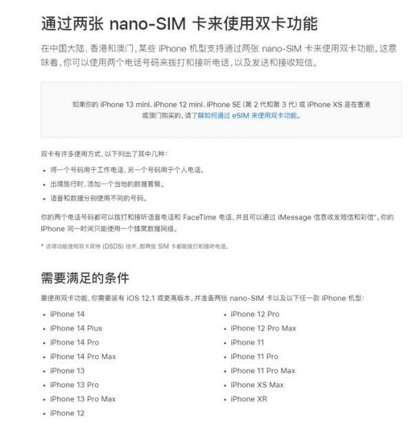 苹果还提到,虽然该机支持 SIM 双卡双待,但目前仅部分运营商支持双 VoLTE。并且需遵守特定的限制条件。
