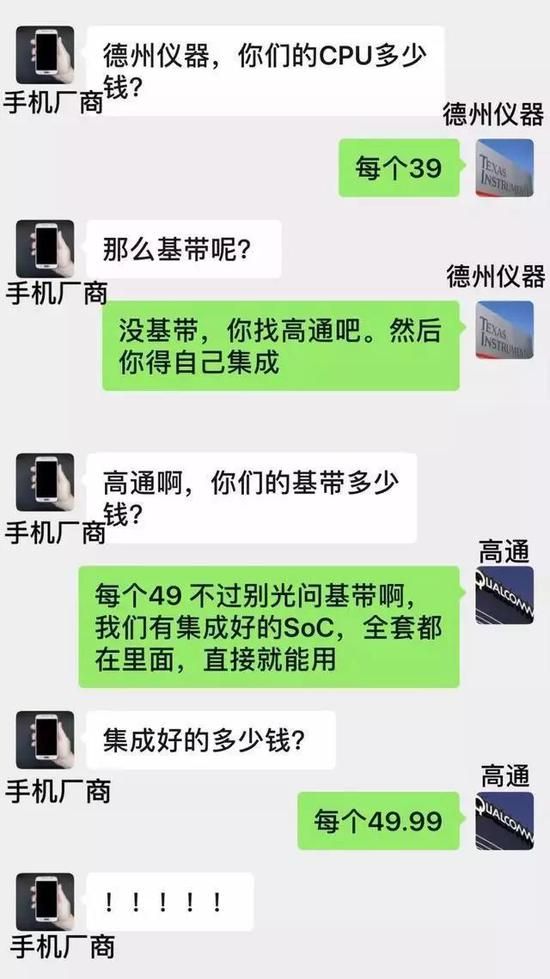 而坐拥专利,标准在手的高通,在2008年全面进军手机SOC市场后,还曾利用通信专利优势,毫不费力的击溃了当时手机SOC的强力竞争对手德州仪器。