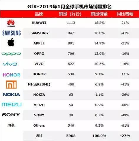 与财报相符的手机数量报告是:2019年上半年,华为智能手机发货量达到1.18亿台,同比增长24%。