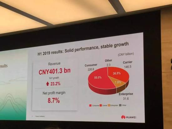 以华为为例,2019年7月31日,华为发布了2019年上半年数据业绩,其中以手机为主要产品的消费者业务收入达到了2208亿元,占到了华为整体营收的55%。