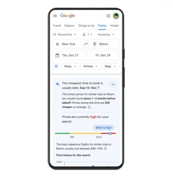 一位谷歌发言人指出:“通过这个功能,我们现在可以根据之前的趋势提供更具体的见解,以便人们可以就是否立即预订或等待价格下跌做出明智的决定。”