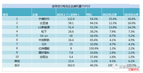 今年1月至7月,全球动力电池装车量362.9GWH,同比增长49.2%。