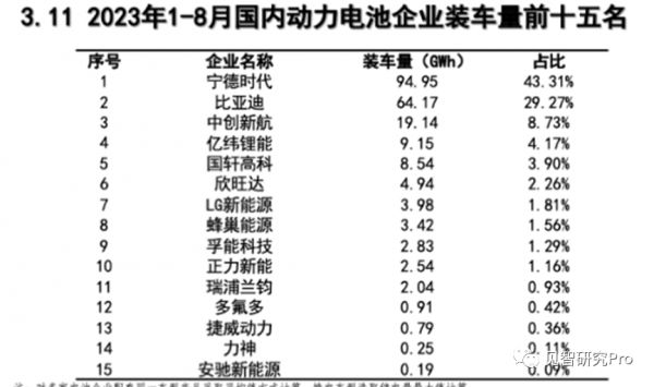 今年1月至8月,动力电池装机量排名在10名以后的尾部动力电池厂商,整体的动力电池市场份额进一步下滑至2.5%。